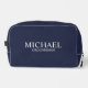 featuring personalised groomsman's name and title in white classic serif font style on navy blue background.
