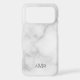 Classic design features personalised 3 letter initial monogram in grey classic serif font style on white marble background.