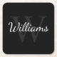 Classic Personalised Monogram and Name Black Square Paper Coaster
