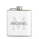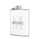 features personalised name in grey and monogram in light grey as background, in classic serif font style,