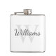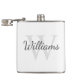 features personalised name in grey script font style and monogram in light grey serif font style as background, on white background.