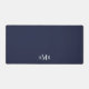 Classic design features personalised 3 letter initial monogram in white classic serif font style on navy blue background.