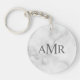 Classic design features personalised 3 letter initial monogram in grey classic serif font style on white marble background.