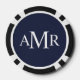 Classic design features personalised 3 letter initial monogram in white classic serif font style on navy blue background.