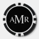 Classic design features personalised 3 letter initial monogram in white classic serif font style on black background.