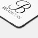 features personalised monogram in black classic script font style and name in black classic serif font style on white background.