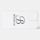 features personalised monogram in black classic script font style and name in black classic serif font style on white background.