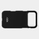 Classic design features personalized 3 letter initial monogram in white classic serif font style on black background.