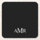 Classic design features personalized 3 letter initial monogram in white classic serif font style on black background.