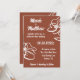 Classic & Modern Floral Wedding Acrylic photo Invitation white writing on a burnt orange background.