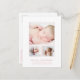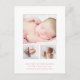 Classic girl birth announcement postcard featuring a minimalist design with a photo collage with three of your favourite pictures. Below is baby's name, birth stats and the parents' names. The back has your personalised message and return address in pink and white. This elegant design is a great way to announce the arrival of your baby girl.