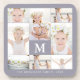 Classic Photo Collage with Monogram, Name, and Year Smoky Lilac and White Coaster.