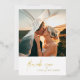 Elegant wedding thank you card featuring a simple and minimal layout with a combination of a classic serif font and a modern handwritten calligraphy below your favourite photo. All text on the front is in real foil. The back has a second picture along with your personalised message in black and white. The text colour on the back may be changed in the design editing tool. This elegant typographic thank you card is great for a formal wedding.