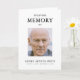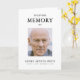 This folded greeting card serves as a beautiful and simple memorial order of service. The clean aesthetic of the design allows for clear readability of the service details, ensuring attendees can easily follow along. Include a cherished photograph to personalise this remembrance card, offering a lasting visual tribute to your loved one. Its classic colour palette, combined with ample space for personalisation, creates a respectful memorial keepsake. Order your memorial service cards today and cherish the memory of those who are dearly missed. This elegant memorial design is perfect for sharing details and remembrance at a funeral, memorial service, or celebration of life.