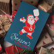 Classic Pickleball Santa Blue Christmas Photo Holiday Card