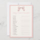 Classic Pink Bow Baby Shower Word Scramble Game Invitation