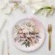 Classic Pink Floral Alcohol Ink Wedding Paper Plate