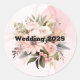 Classic Pink Floral Alcohol Ink Wedding Round Sticker