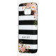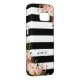 Classic Pink Floral Black White Stripes Monogram Case-Mate Samsung Galaxy Case