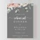 This classic pink rose grey rehearsal dinner welcome poster is perfect for a rustic wedding rehearsal. The design features elegant watercolor dusty pink roses and green foliage, neatly assembled into beautiful bouquets with a grey background.