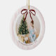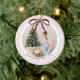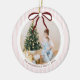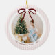 Classic Pink Stripes Red Bow Christmas Ceramic Tree Decoration