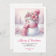 Celebrate the season with this cute watercolor pink coquette snowman kids Christmas card, set in a magical snowy forest. Editable text lets you personalize instantly, and the digital download provides an easy, fast, and festive holiday greeting.