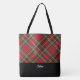 Stylish and trendy red plaid monogrammed tote bag.