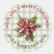 Classic Plaid Poinsettia Floral Merry Christmas Round Sticker