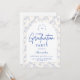 An elegant graduation celebration design featuring a delicate blue toile floral border inspired by classic European porcelain and vintage botanical prints. The intricate florals frame a clean arched centre panel, creating a refined and timeless composition that highlights the graduate’s name and event details beautifully. Soft blue tones against a crisp ivory background give the design a sophisticated yet celebratory feel. Perfect for a stylish graduation gathering with a classic, romantic aesthetic.