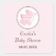 A vintage pram encircled within a brown border highlights this elegant baby shower sticker. Subtle white polka dots print against a soft pink to add an classic look. Easily customised into a thank you sticker. Available in alternate colours with matching products.