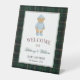 Classic Preppy Bear Designer Plaid Baby Shower Pedestal Sign