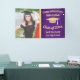 Show pride in your grad with an amazin yard banner sign! Instant preview and easy online ordering, shipped directly to you. Add your studen'ts photo, school, year and details. Purple and Gold high school or college colours with classic mortarboard and elegant shading. Big giant yard sign or indoor/outdoor banner, Congratulations to the graduate of the class of (your year). Personalised outdoor or indoor graduation party or porch party sign banner with your graduate's year, name, high school. Spectacular way to congratulate the graduate while social distancing at home or when it's time to welcome family and guests to your graduation party . Customise the background colour more by clicking "customise further" and changing the background colour.