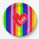 Classic Rainbow Stripes with Heart Colourful Paper Plate