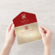 Classic Two Lined Red / Faux Gold Foil Rectangle Double Happiness On A Solid Red Colour / Faux Gold Foil Image Background, Chinese Wedding Invite + RSVP Card, All-in-One Invitation.