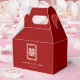 Classic double lined red/ivory cream white rectangle double happiness on a red/ivory background double-sided chinese wedding party favour box.