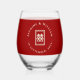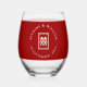 Simple classic rectangle double happiness auspicious symbol design in red / ivory cream beige white with a plain background stemless wine glass for any chinese, oriental or asian wedding.
