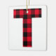 Classic Red and Black Buffalo Check T Monogram Ceramic Ornament