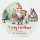 Classic red and green cute gnome with gifts round sticker