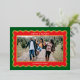 Modern and festive, this red and green holiday photo card makes your family the star within a preppy and trendy scalloped frame in real, shiny, metallic gold foil for that high-end designer look. With charming greeting and name text on the front, the back of the card has ample room for a longer message with family updates and anything other messages of cheer you want to share with family and friends over the Christmas season. Festive blocks of colour within borders of foil look like modern cloisonné and set a merry and bright tone to go with almost any horizontal orientation family photo!