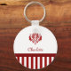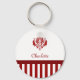 Classic Red and White Damask With Stripes And Name Key Ring