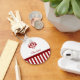 A preppy red and white keychain with elegant stripes decorated with a vintage style damask pattern. Personalise this classic old fashion style design by adding your name.