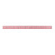 Classic red and white plaid pattern is made of red, white and light red squares with thin lines of white dividing the coloured squares.