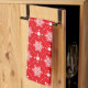 Festive red and white snowflakes christmas pattern on kitchen towel.