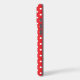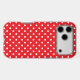 White polka dots on a red background.