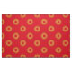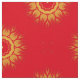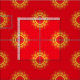 Seamless decorative pattern featuring yellow ornaments on a red background.