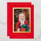 This holiday photo card exudes sophistication with its classic and traditional design. The rich, bright red background and crisp real gold foil border frame your cherished photo effortlessly, creating an upscale, luxe feel that's perfect for celebrating the holidays.