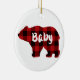 Classic red black plaid bear design baby ceramic tree decoration