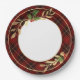 Classic Red Christmas Tartan, Holly & Gold Leaves Paper Plate