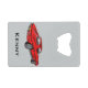 Classic Red Corvette Design Bottle Opener with customisable text on front and back, and background colour.