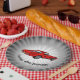 Classic Red Corvette Design Paper Party Plate with customisable text.